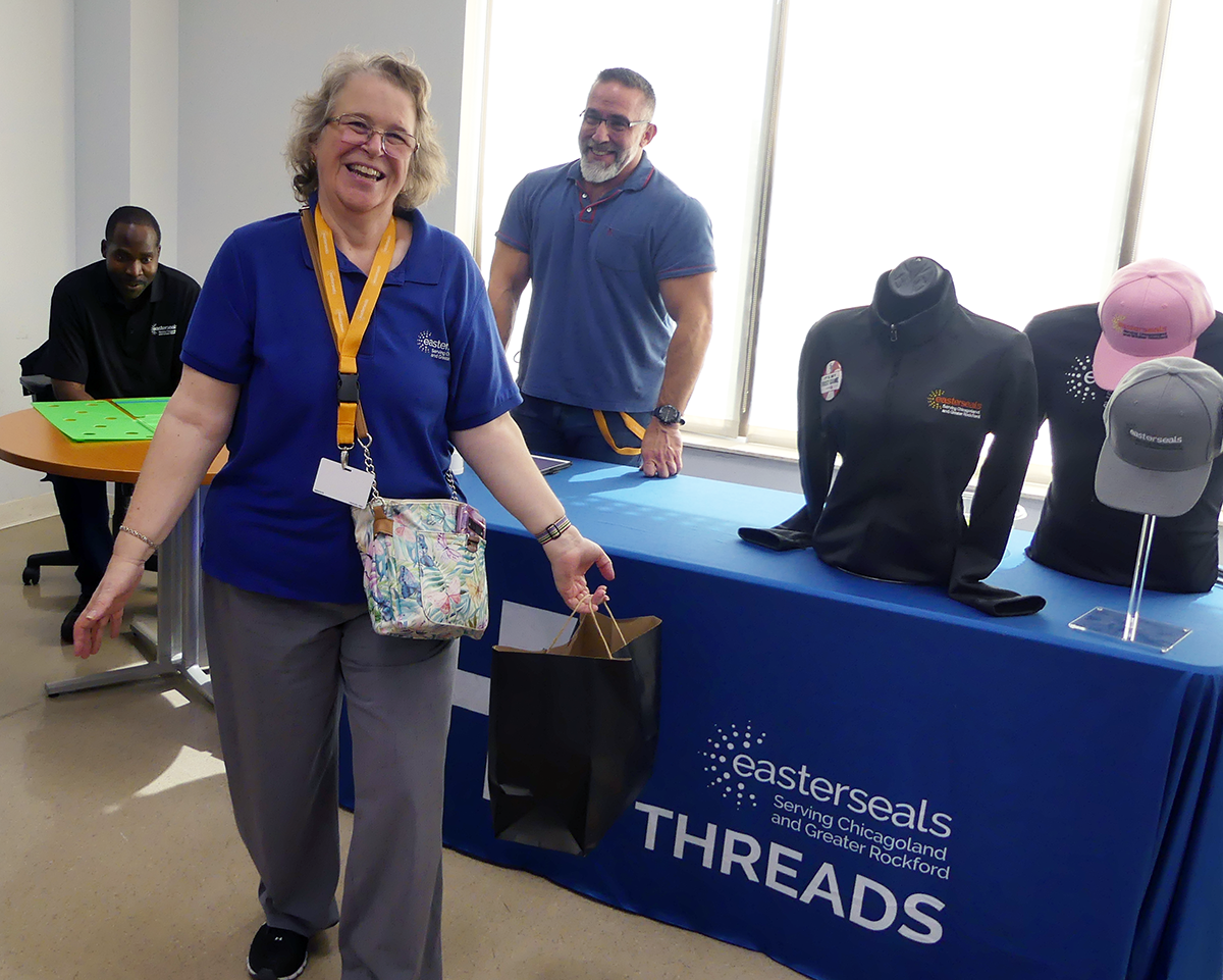 Harry, Jr., thrived with the rhythm of repetitive tasks and, with that in mind, an idea was born: a button maker for Harry to create custom buttons that he could proudly sell. Harry loved it, and a business was born (originally called Harry’s Buttons)—one that has since made a positive impact on hundreds and helped foster a more inclusive economy. The Engnells eventually donated HB Threads to Easterseals Serving Chicagoland and Greater Rockford to ensure expansion, sustainability, and the growth of employment opportunities for more individuals with disabilities.